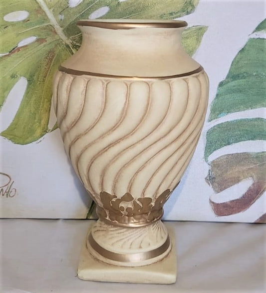In offertaVaso portafiori beige con decoro oro H 30cm