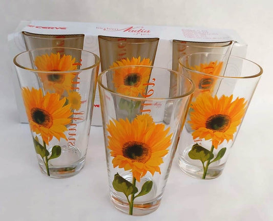 SET 3 BICCHIERI BIBITA IN VETRO TRASPARENTE CON DECORO GIRASOLE CC.210