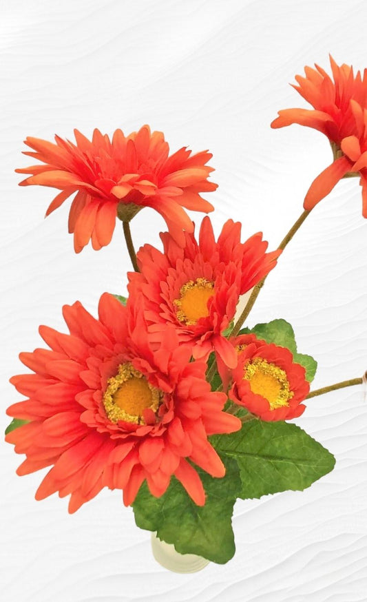 Bouquet 7 Gerbere Rosse con 8 Foglie H 45cm