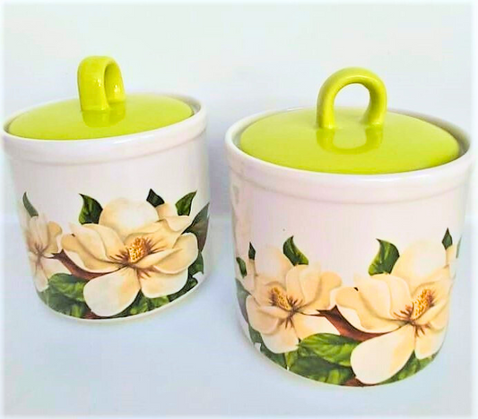 Barattolo Da Cucina Ceramica Decorata, Zuccheriera Chiusura Ermetica, con cucchiaino 8x8x10 cm